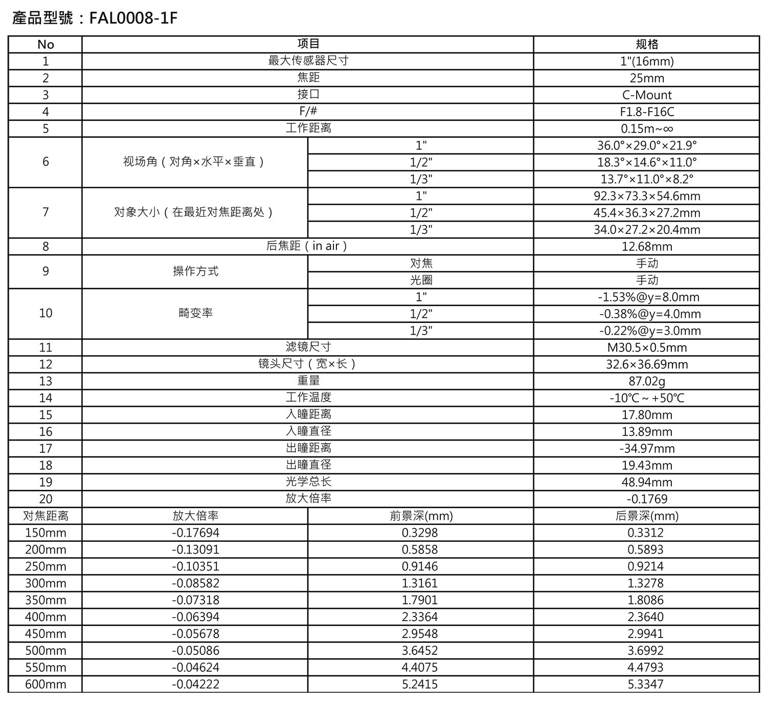 华国光学huaguo 1'' 8MP 25mm FA镜头