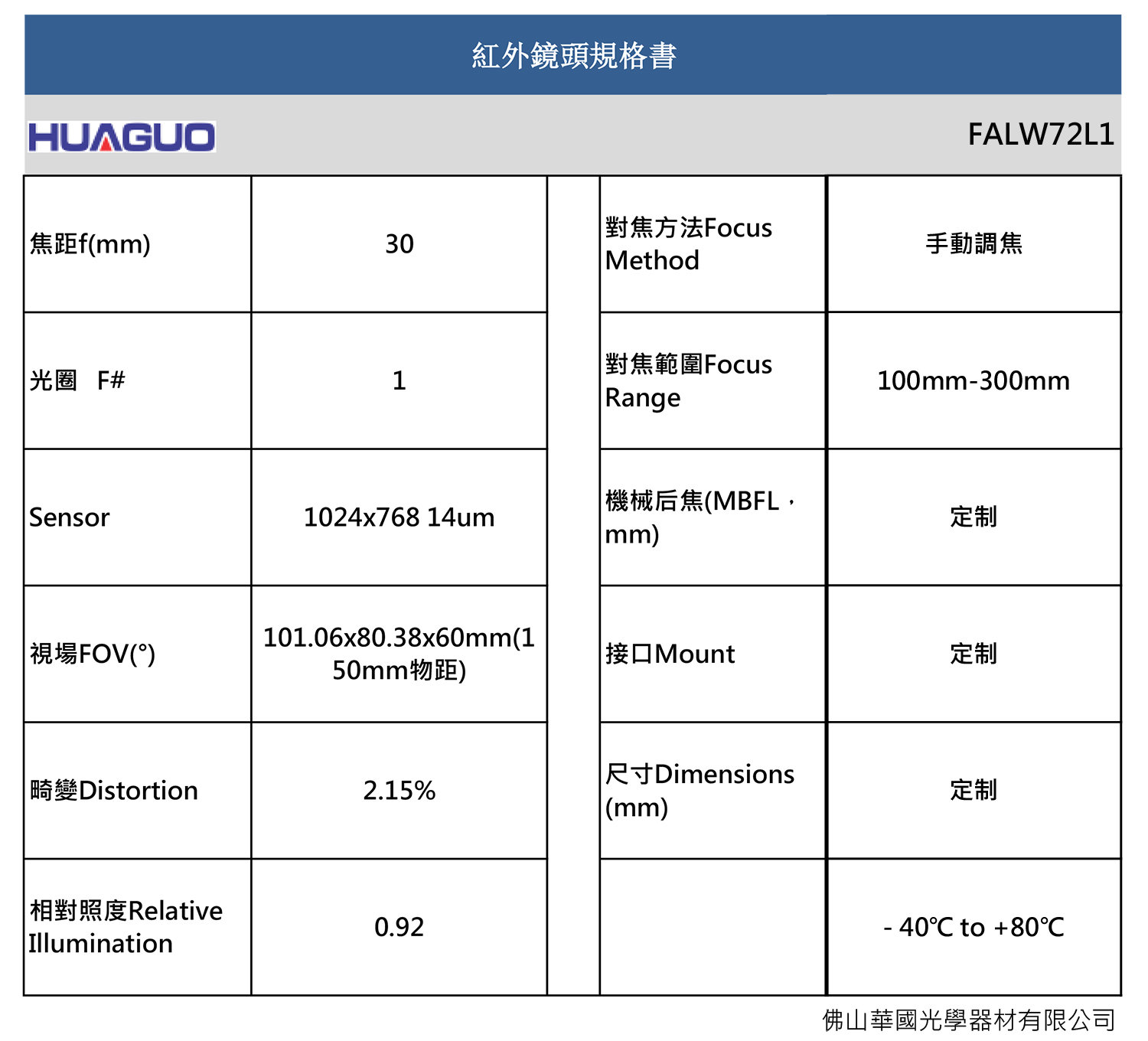 华国光学huaguo 30mm LIR0099-0K 红外镜头