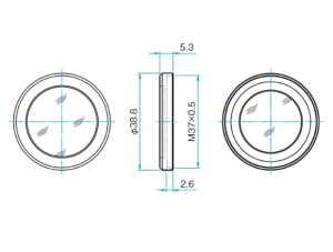 技术指标 | 外径 | φ38.8mm | 全长 | 5.3mm | 安装螺纹 | M37x0.5 | 对应机种 | PAL-20-NIR-HR-LC00 PAL-50-NIR-HR-LC00 | 自量 | 0.007kg | 主要材质 | 玻璃:合成石英 金属框架:铝合金 | 表面处理 | 白色氧化 |