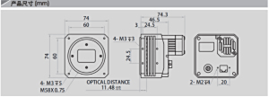 外壳尺寸(mm) (不含镜头后座和后壳接口) | M58 口,带风扇:74 mm × 74 mm × 74.3 mm(不含镜头座和后壳接口) |