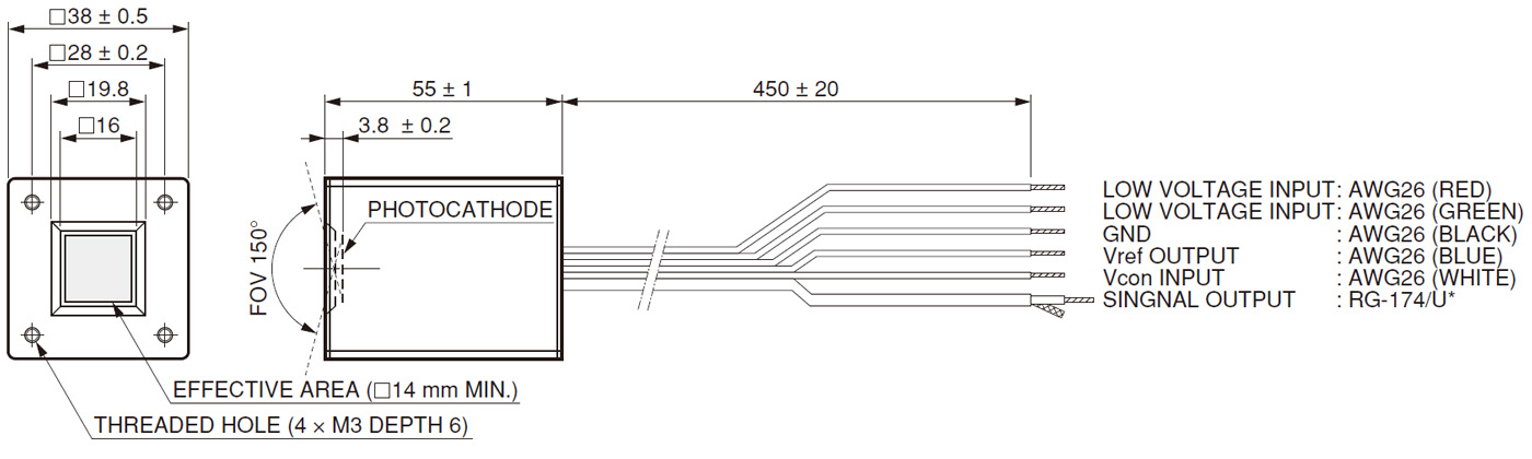 光阴极面区域尺寸 | 14 mm x 14 mm |
