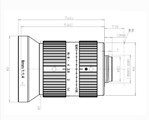 滤镜螺纹 | M58×P0.75 | 2/3"视场角Angle | 57.6°×44.9° |