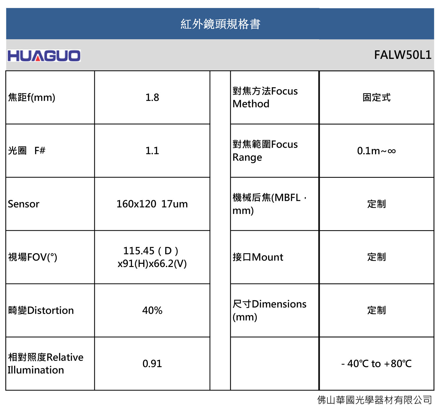 华国光学huaguo 1.8mm LIR0077-0J 红外镜头