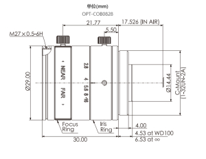 镜头外径∅29 mm,与相机尺寸兼容,结构紧凑体积小。