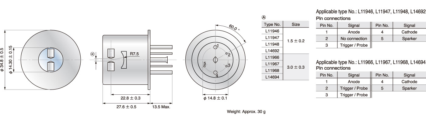 这些 20 W 氙气闪光灯采用金属罐封装,以实现高输出。MgF2 窗型可发射 160 nm 至 7500 nm 的光谱,适用于检查、测量、化学分析等各种用途。